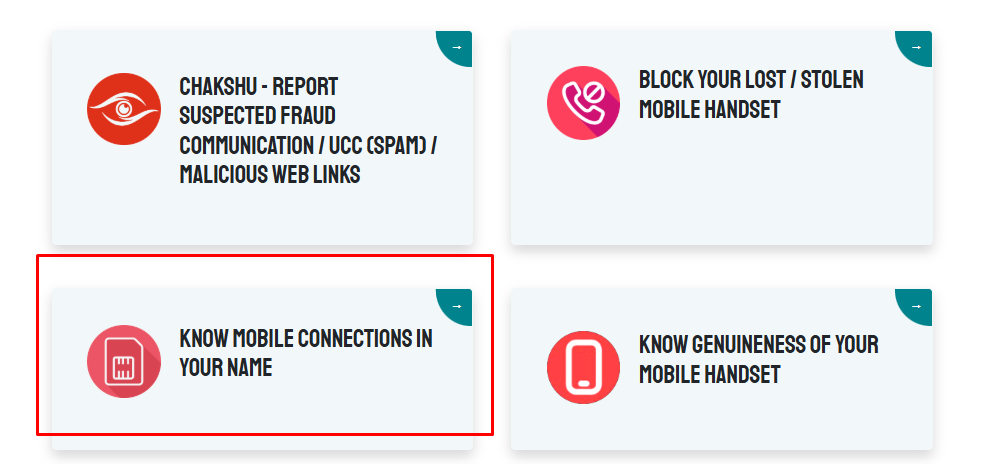 Sanchar Saathi वेबसाइट पर क्लिक करने के बाद आपके सामने यह वेबसाइट खुल जाएगी इस वेबसाइट पर आने के बाद बहुत से ऑप्शन देखने को मिलेंगे आपको यहाँ स्क्रॉल करके नीचे आना है और Know Mobile Connections In Your Name के ऑप्शन पर क्लिक करना हैं,